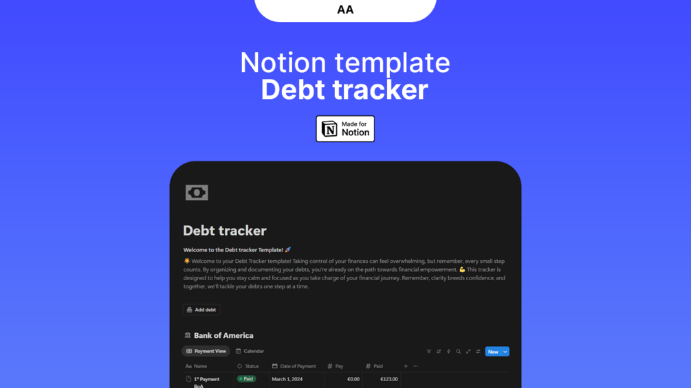 ๐ Welcome to your Debt Tracker template! Taking control of your finances can feel overwhelming, but remember, every small step counts. By organizing and documenting your debts, you're already on the path towards financial empowerment. ๐ช This tracker is designed to help you stay calm and focused as you take charge of your financial journey. Remember, clarity breeds confidence, and together, we'll tackle your debts one step at a time.